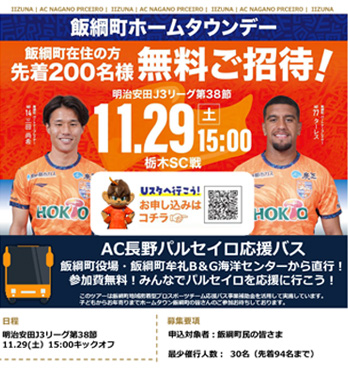 2025年11月29日(土) 【2025明治安田J3リーグ 第38節】ホームゲーム AC長野パルセイロvs栃木SC オフィシャルバスツアー