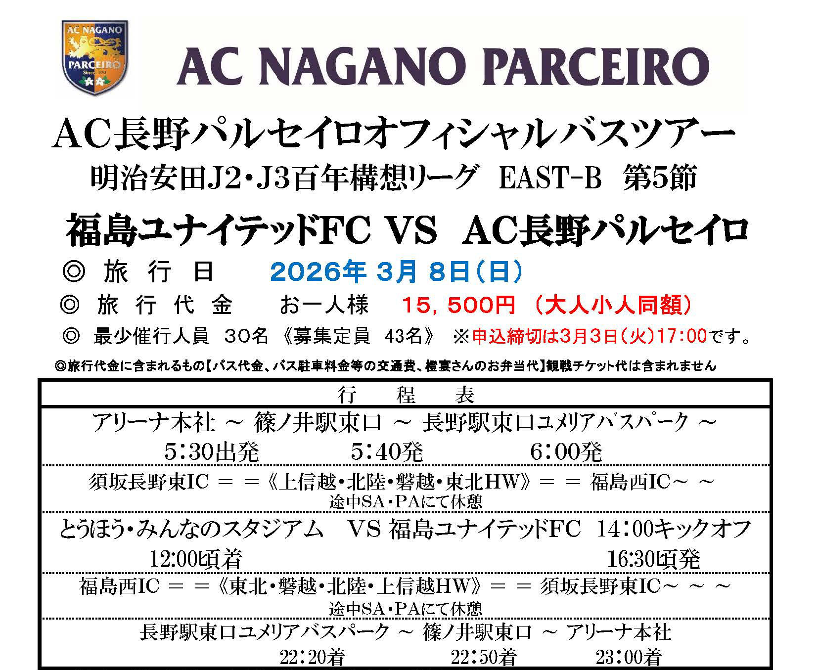 各種メール着信拒否をされている方は @arenabus.jp のドメイン指定受信をしてください。又、催行決定となりましたら最終のご案内をメール致しますので必ずご確認ください。